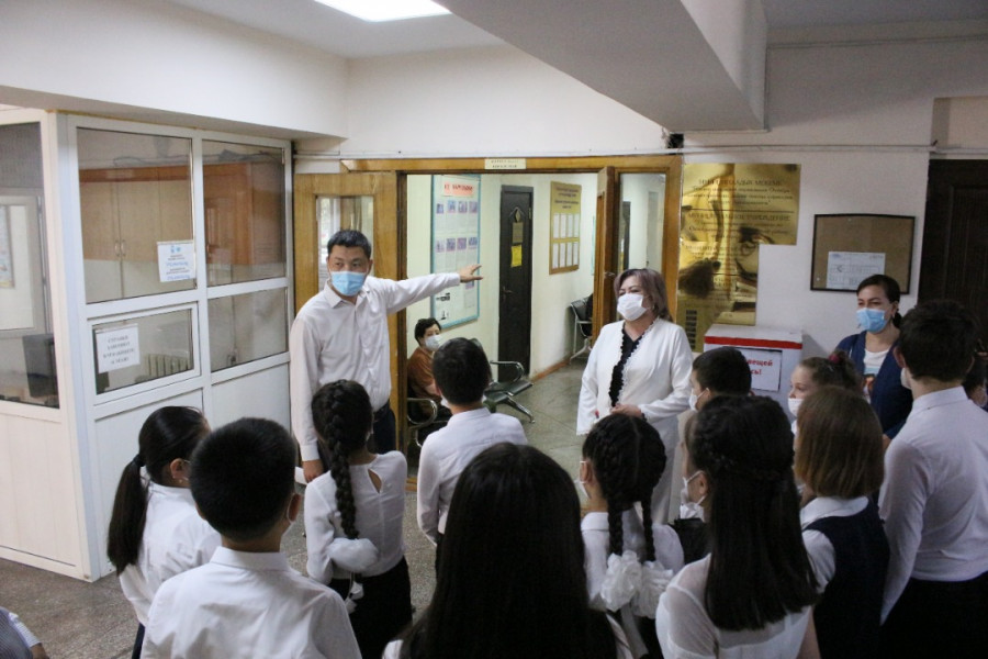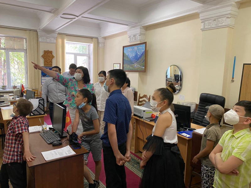 Администрацию Первомайского района посетили активные ученики школ. Заместитель главы Аида Рысбаева и руководитель аппарата муниципальной администрации Чынгыз Байсов рассказали детям о деятельности администрации.