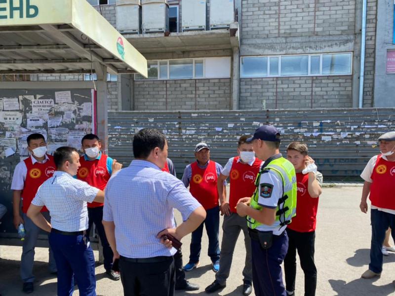 Добровольная народная дружина и сотрудники ГУВД г. Бишкек обеспечивают безопасность пассажиров, водителей маршрутных такси, вышедших на линии, и всех водителей-волонтёров, которые сейчас помогают развозить горожан.