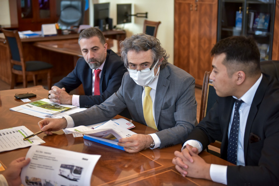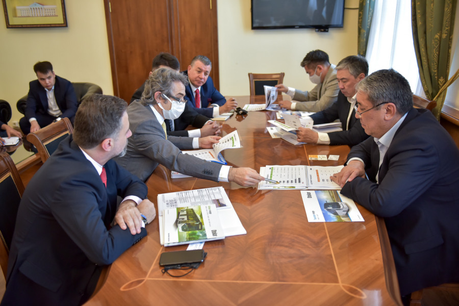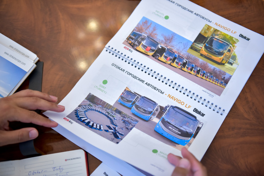 Во время встречи руководитель «Отокар Отомотив ве Савунма Санайи» провел презентацию компании и ознакомил градоначальника с выпускаемыми автобусами.