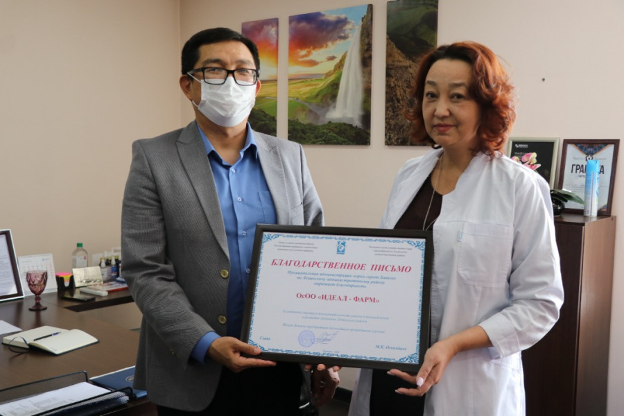 Справочно: В 2018 году ОсОО “ИДЕАЛ-ФАРМ” ввёл в строй фармацевтический завод по выпуску спирта медицинского, антисептических растворов, парфюмерно-косметических средств. Необходимо отметить, что во время пандемии предприятие передало государству гуманитарную помощь в виде антисептических спреев и растворов на сумму 6 миллионов сомов. Также в мае 2021 года для поддержки населения в ходе конфликта на кыргызско-таджикской границе передало парфюмерно-косметические средства.