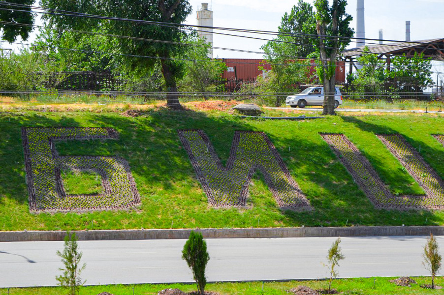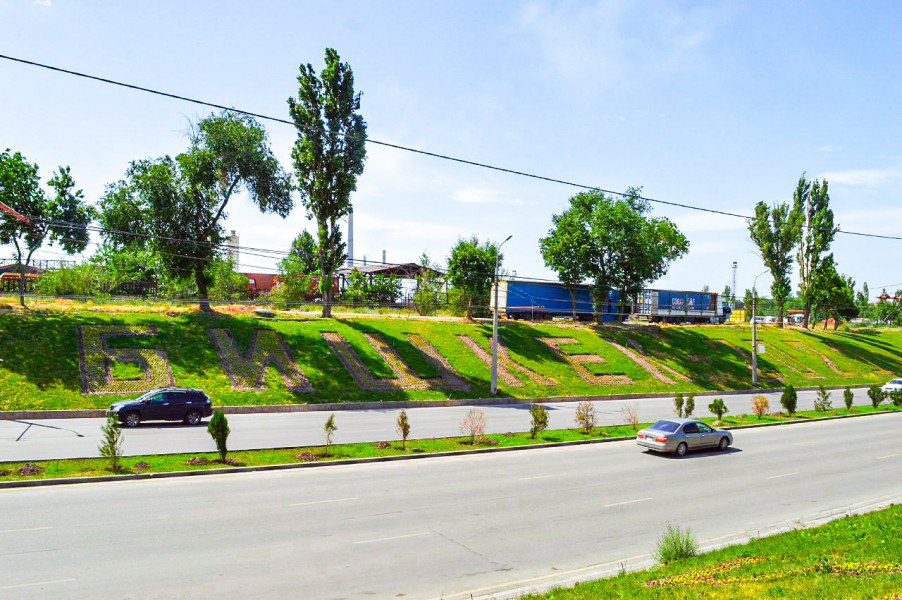 Теперь вдоль дороги горожан и гостей столицы радуют надписи « Бишкек 2021» и «Кыргызстан 30 жыл», сделанные из цветов.
