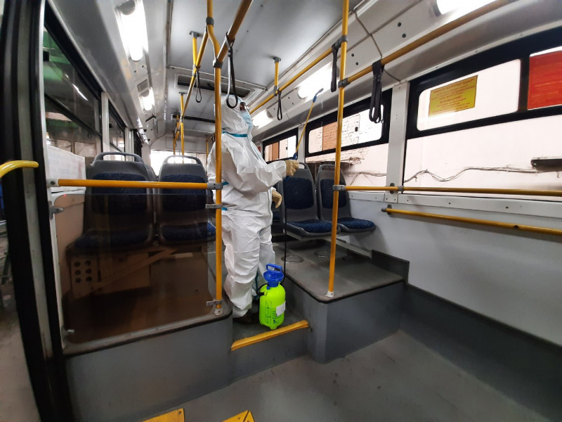 Спецсмесью были обработаны все кабинеты, коридоры, диспетчерские пункты и салоны троллейбусов. Такая дезинфекция моментально обеззараживает поверхности и действует против любых видов бактерий.