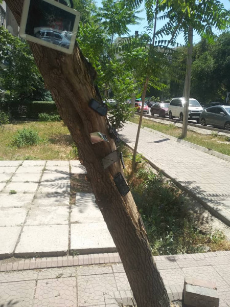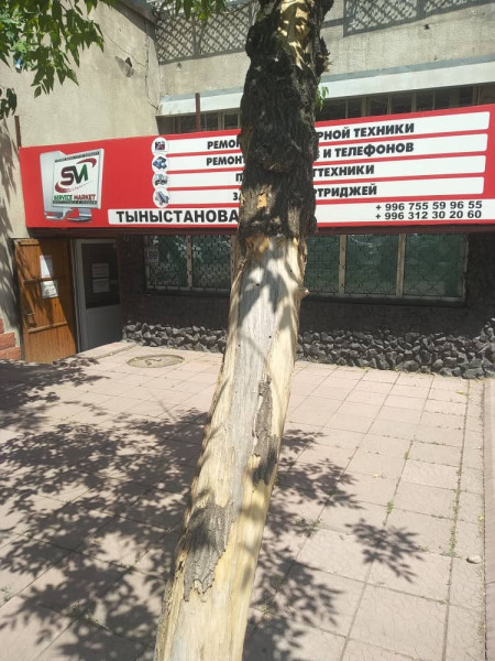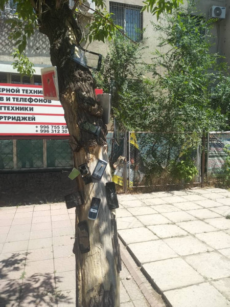 В отношении частного предпринимателя Гребневой Т. составлен протокол по статье 120 на 3 тысячи сомов за повреждение зелёных насаждений. Предприниматель прибила сотовые телефоны к дереву для рекламы пункта ремонта.