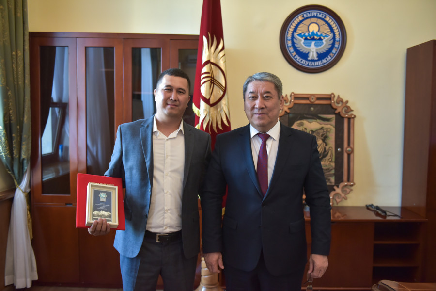 Почётную грамоту мэрии города Бишкек вручил и.о. мэра столицы Бактыбек Кудайбергенов. Градоначальник поблагодарил неравнодушного горожанина за проявленную храбрость и активную гражданскую позицию.
