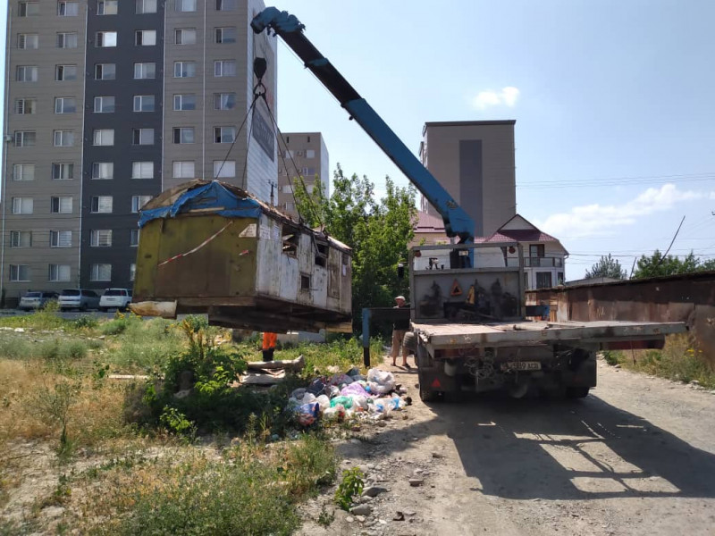 В этот раз демонтированы навесы в микрорайоне №5, возле дома №63 и по улице Карасаева. В микрорайоне Тунгуч, возле дома №36/2 убрали самовольно установленный контейнер.