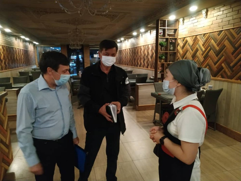 Во время мероприятия также провели разъяснительные беседы с владельцами и работниками увеселительных заведений (ночные клубы, рестораны, точки общепита, кафе, караоке, бары) о соблюдении ограничения режима работы с 23.00 до 07.00 часов, без изменения режима предоставления услуг по доставке еды и реализации еды на вынос до улучшения эпидемиологической ситуации в городе.
