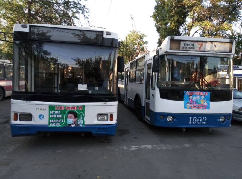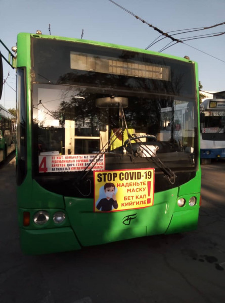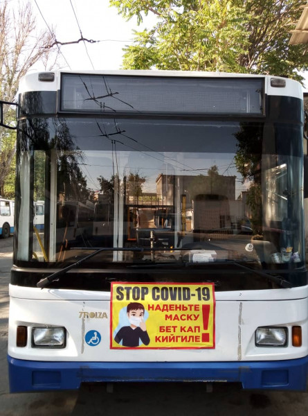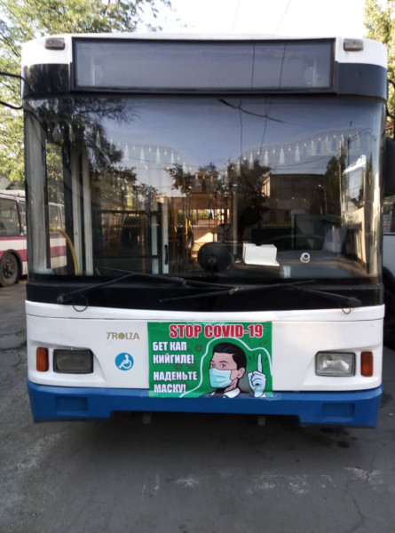 Теперь подъезжающий к остановке троллейбус или автобус будет напоминать о соблюдении масочного режима в общественном транспорте.