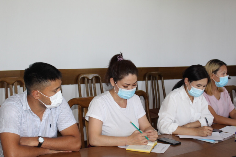 В зале заседаний Свердловского акимиата состоялось очередное заседание районного штаба по противодействию распространению коронавирусной инфекции с участием вице-мэра Русланбека Акылбекова, главы Бахтияра Карамшакова и руководителей городских и районных служб.
