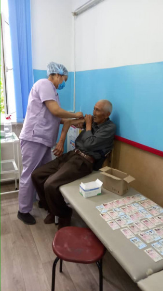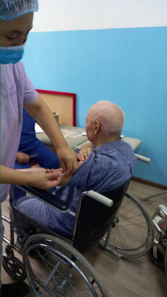 В Бишкекском социальном стационарном учреждении общего типа для пожилых и лиц с ограниченными возможностями здоровья ранее 145 подопечных и 71 сотрудников вакцинировались, накануне еще 52 подопечных получили вакцинацию.
