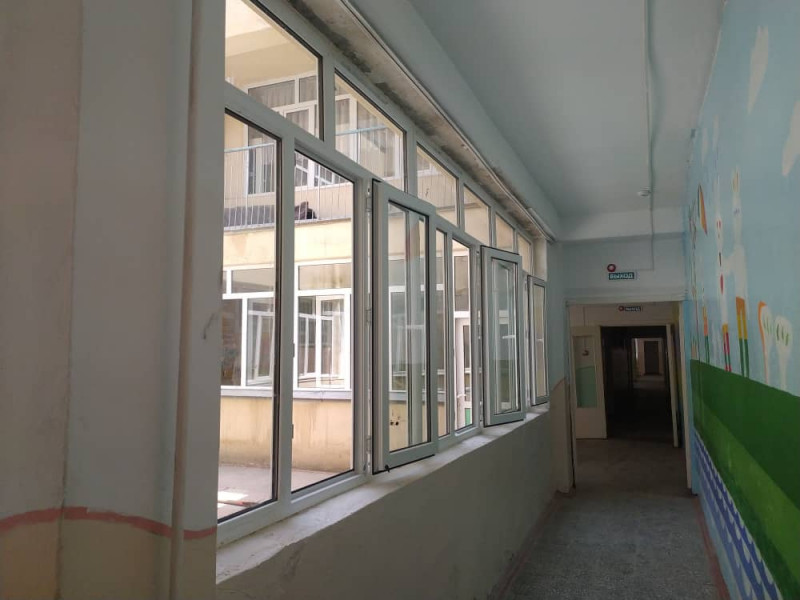 В дошкольной образовательной организации №185 ведутся работы по замене оконных блоков. Подрядной организацией – ОсОО «Темир Строй» были сняты все старые окна, в процессе установка новых.