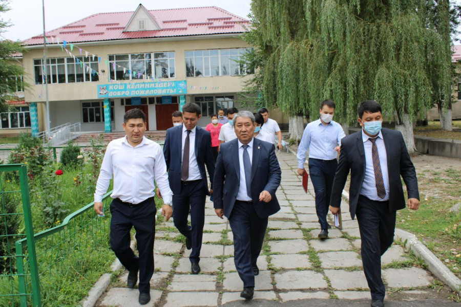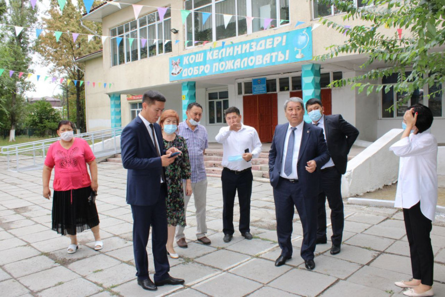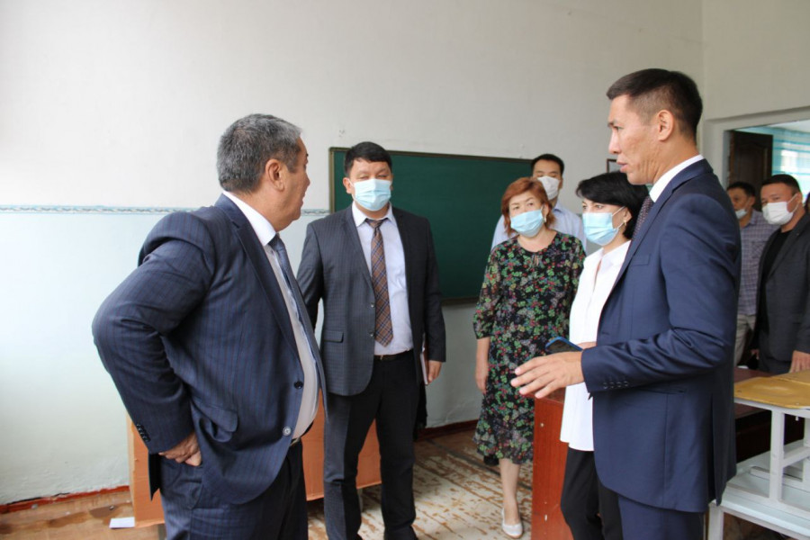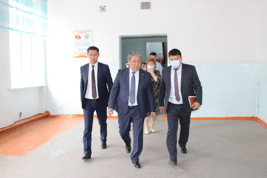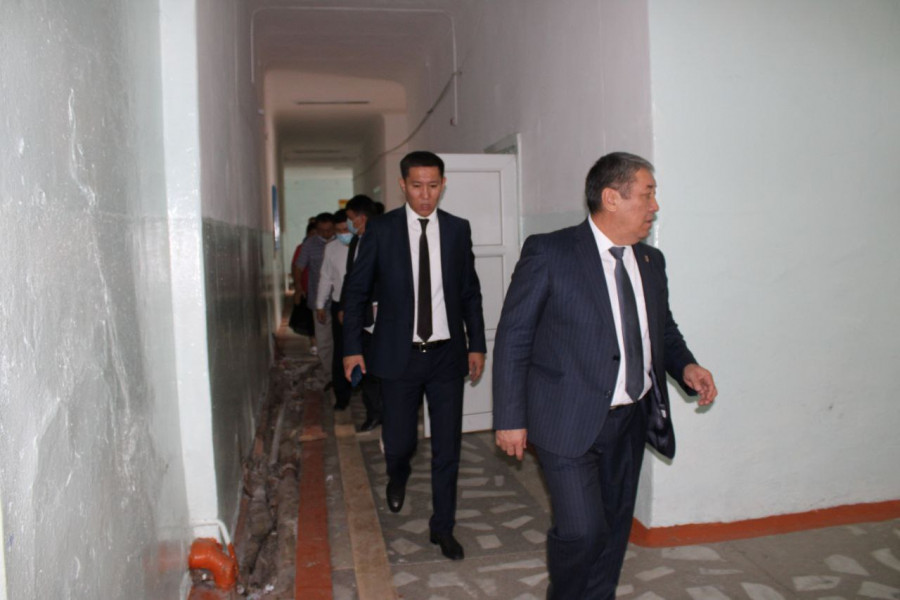 Исполняющий обязанности мэра Бишкека Бактыбек Кудайбергенов посетил СШ №46 и ознакомился с качеством проводимого ремонта.