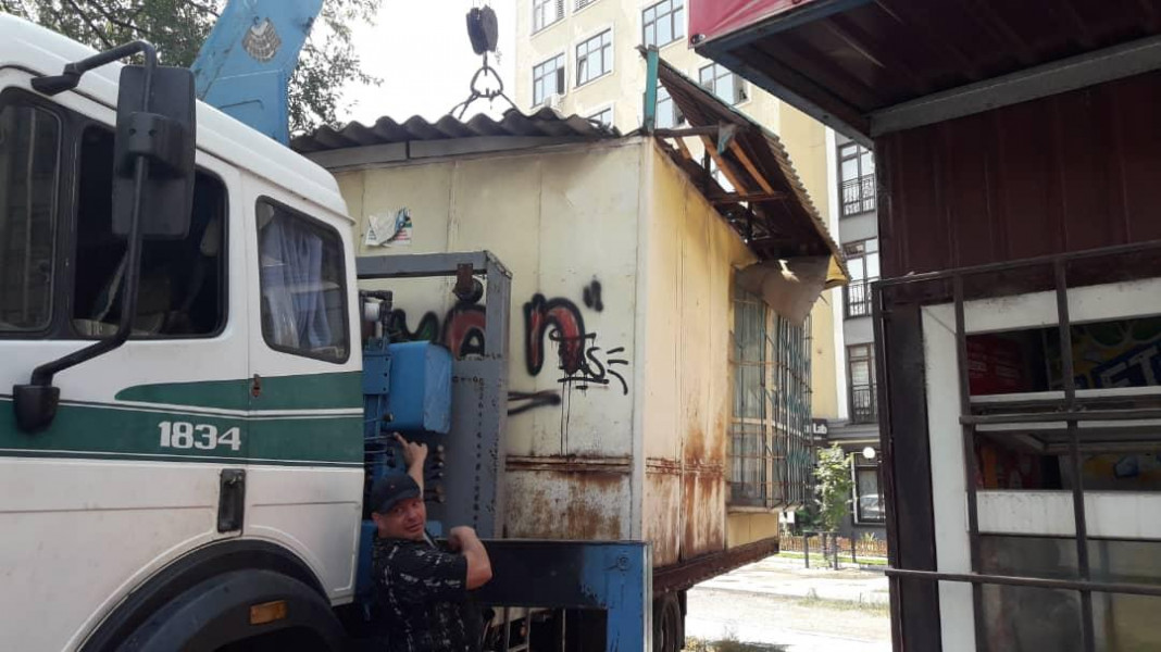 Также наша команда убрала железные стойки в микрорайоне Джал. Демонтирован объект облегченного типа в виде магазина на пересечении улиц Каркыра и Садыр-Аке.
