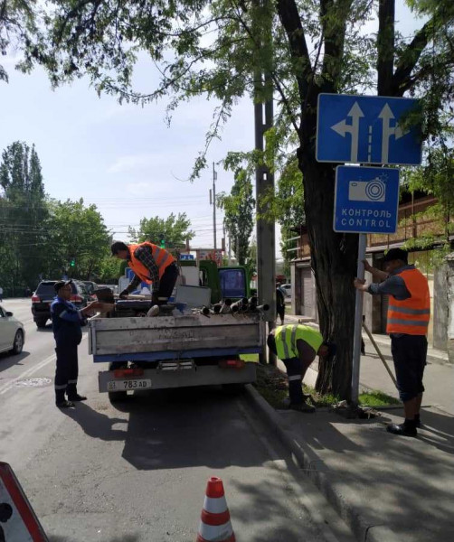 Согласно акту обследования и по предписанию ОДН УПСМ по ГУВД города Бишкек в случае изменения режима на перекрёстках ежедневно в целях профилактики ведутся работы: сварка поправка, замена, установка и покраска дорожных знаков, обновление, нанесение и демаркировка дорожных разметок, ямочный, карточный ремонт.