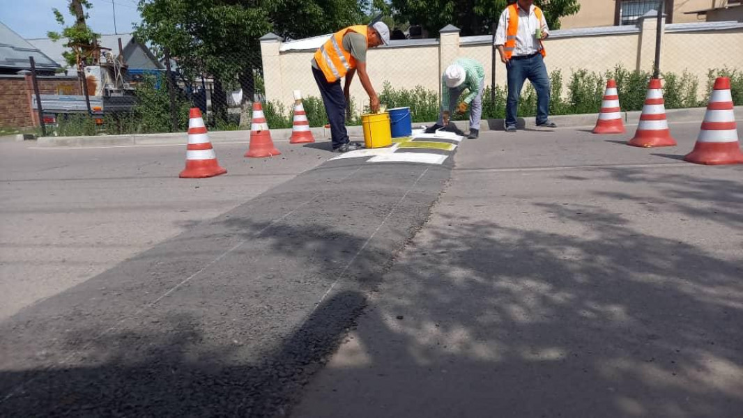 Со стороны муниципального предприятия «Бишкекасфальтсервис» проводится активная работа по содержанию дорожной инфраструктуры, нанесению дорожной разметки и установке дорожных знаков, ямочный и карточный ремонт дорог, заливке трещин по проекту.
