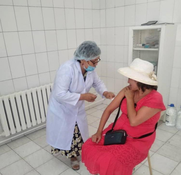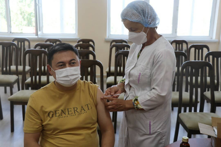 Глава Свердловского района Бахтияр Карамшаков, сотрудники акимиата, МТУ и председатели квартальных комитетов также получили китайскую вакцину «Sinopharm» против КОВИД-19.