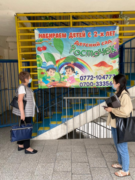 С проверкой нагрянули в детские частные сады: «Солнечный город», «Слонёнок», «Зирек», «Силк роуд», «Ахунова», «Бекхан», «Умай Нур», «Росточек». По результатам проверки было составлено 5 актов и выписано 1 санитарное предписание по устранению замечаний.