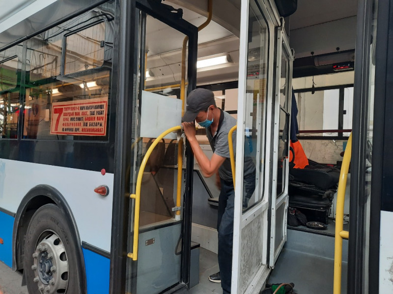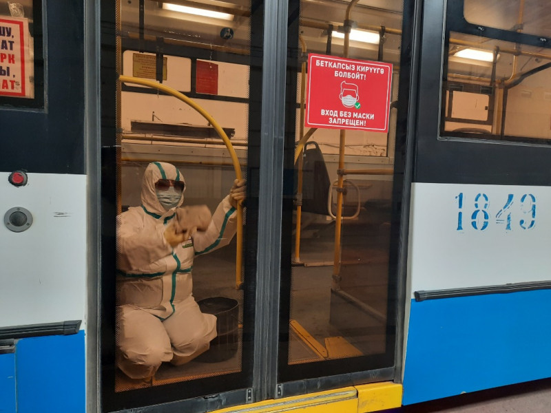 Из-за напряжённой эпидемиологической ситуации в столице с коронавирусной инфекцией, Бишкекское троллейбусное управление придаёт особое значение санитарной обработке не только троллейбусов, но и всей прилегающей территории учреждения.