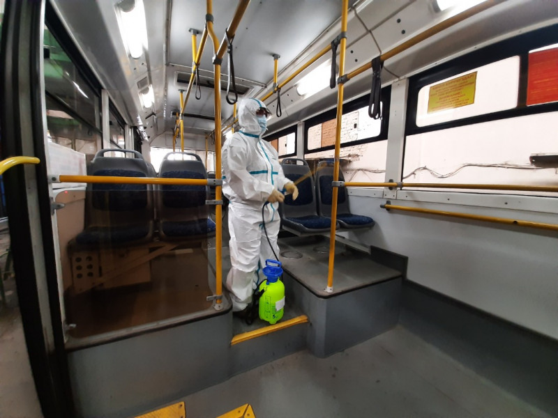 Вся поверхность помещений и салонов троллейбусов обрабатывается раствором АКТОСЕД 0,2%.