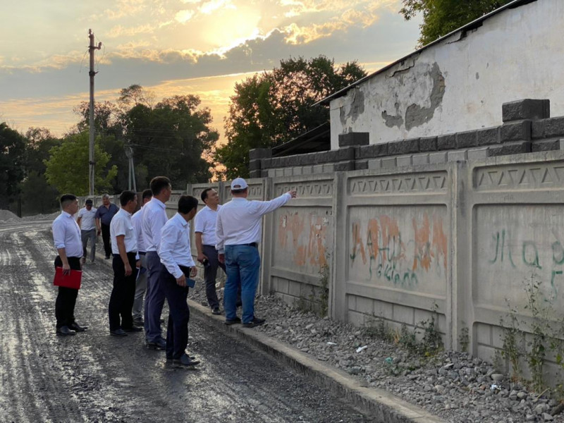 Участники выезда ознакомились с ходом строительства дороги и осмотрели два объекта, препятствующих строительству дороги, которые находятся на территории Пригородного айыл окмоту. Вице-мэр города поручил службам провести соответствующую работу по сносу незаконных объектов и рассмотреть возможность строительства остановочного комплекса для удобства жителей жилого массива «Жениш».