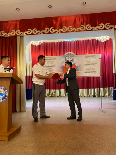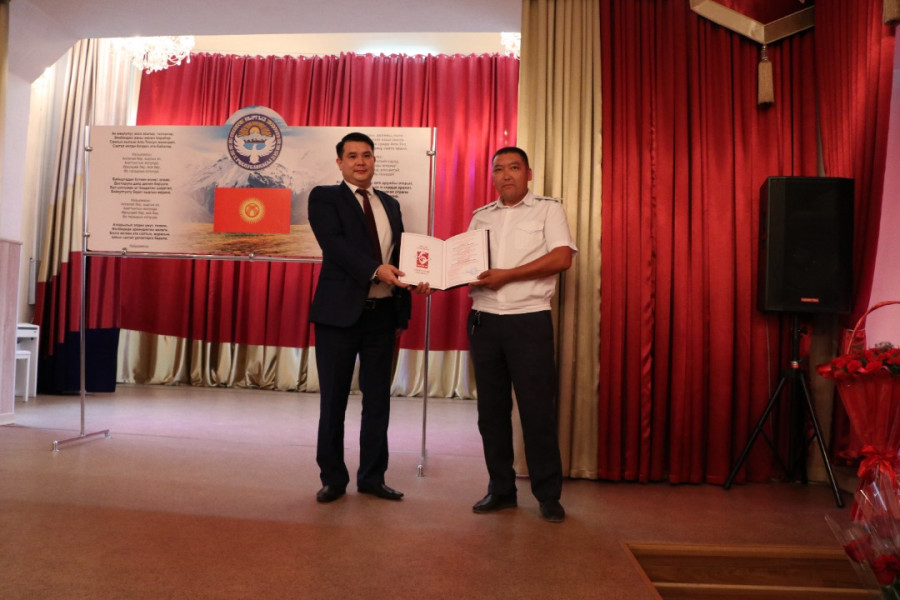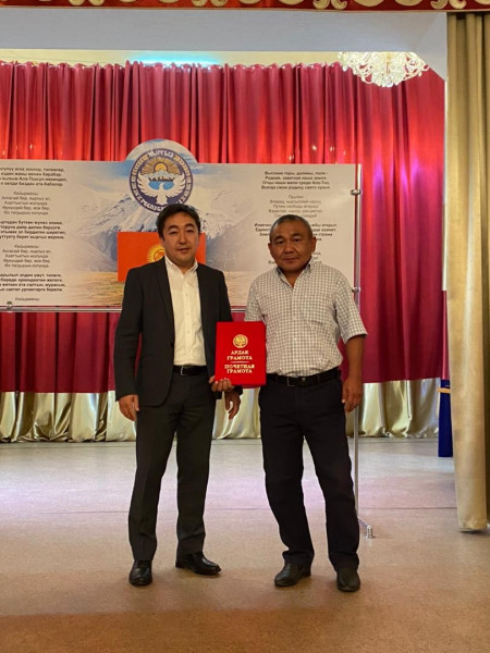 Первый заместитель главы Первомайского района Сатыбек Каныбеков вручил сотрудникам ГП «НК» «Кыргыз темиржолу» Почётные грамоты, Благодарственные письма.