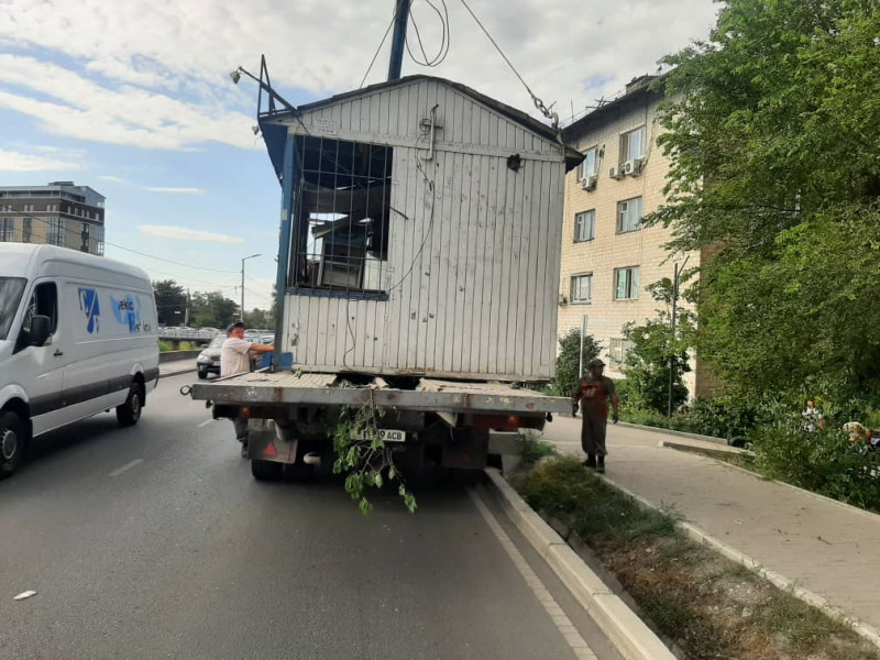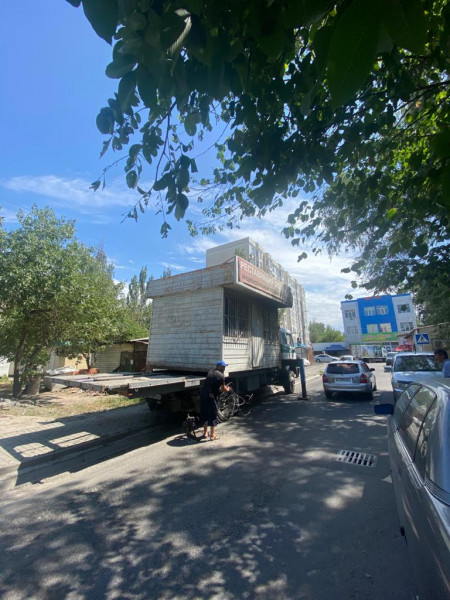 По улице Малдыбаева демонтирован одинокий, но незаконно установленный павильон.