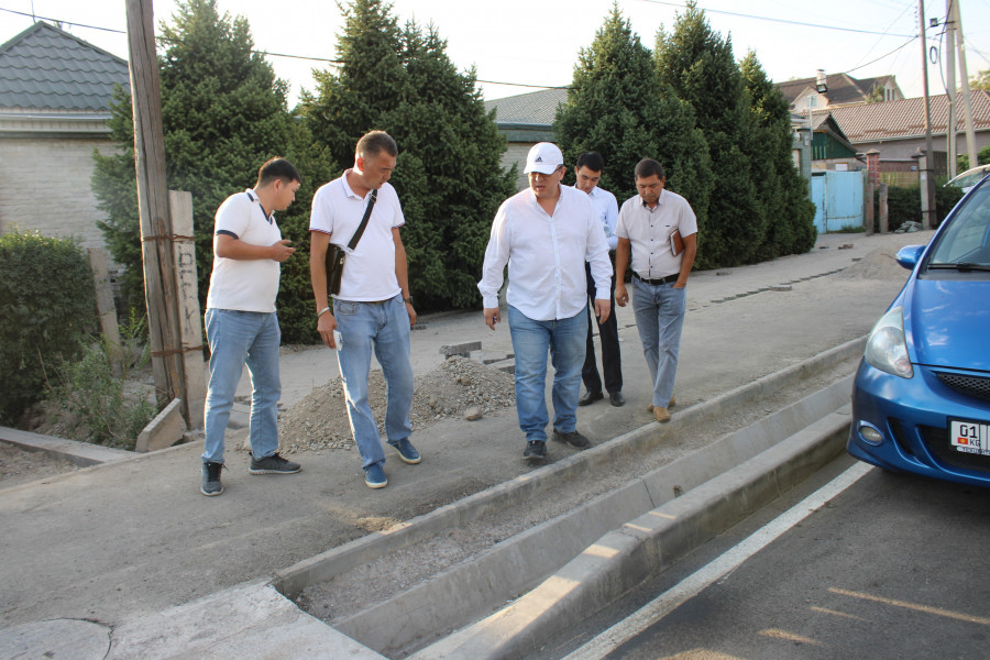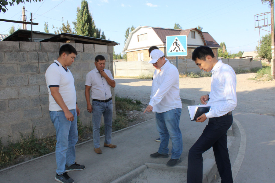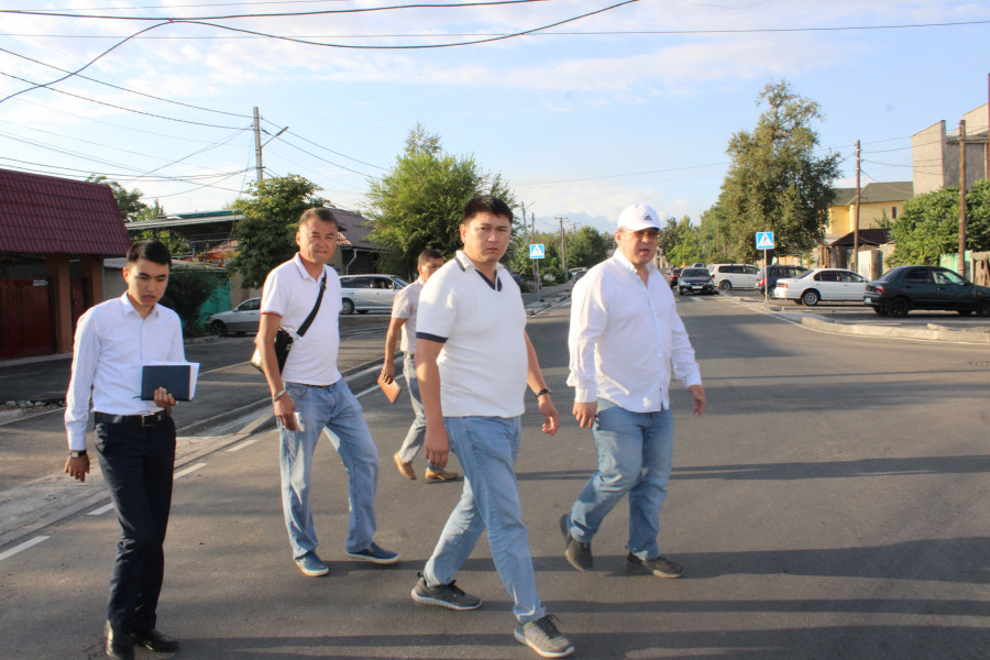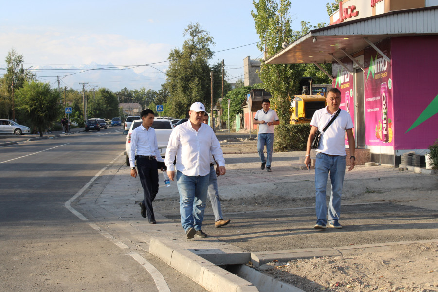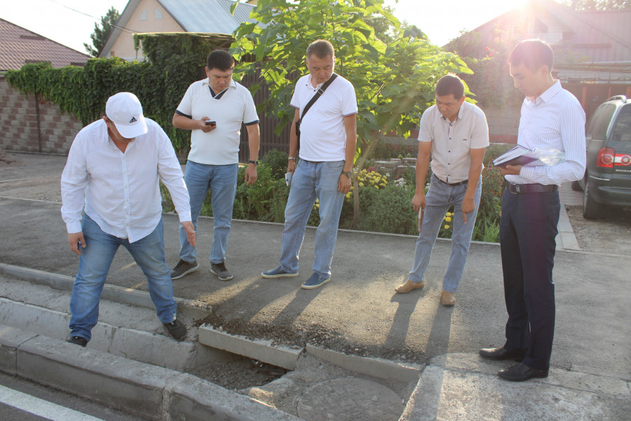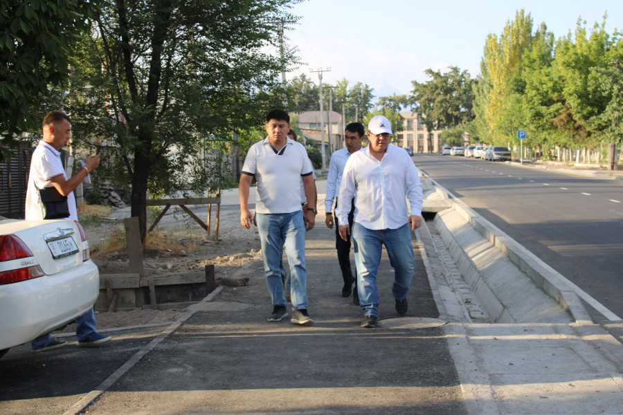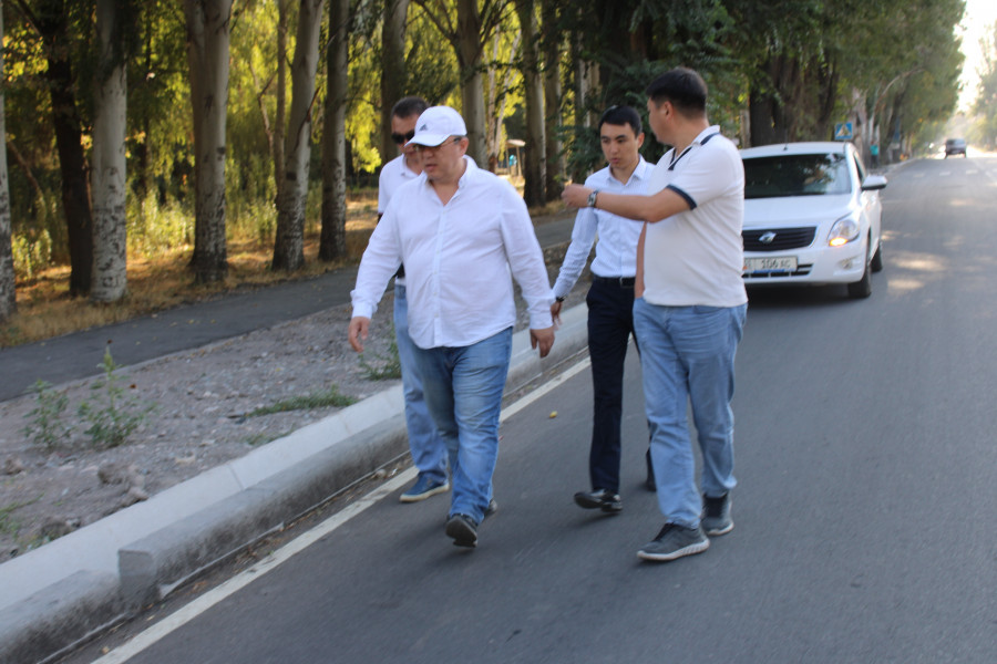 На этот раз он проинспектировал улицы Будённого, Фере, Ак-Тилек, Шота Руставели, Ажибек Баатыра и Бакаева. Особое внимание он обратил на устройство ирригационных лотков и уровень люков, бордюров, тротуаров, на которые у горожан часто возникают нарекания, и высказал ряд замечаний по качеству дорожных работ.