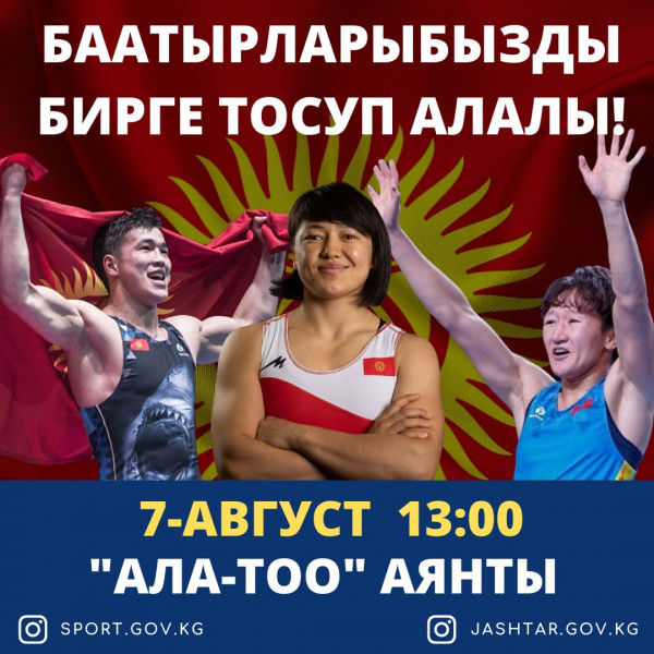 7 августа в 13:00 часов на главной площади Ала-Тоо мы все вместе встретим наших спортсменов, которые с успехом выступили на Олимпийских играх в Токио.