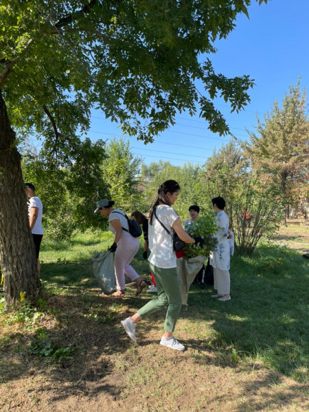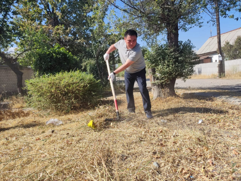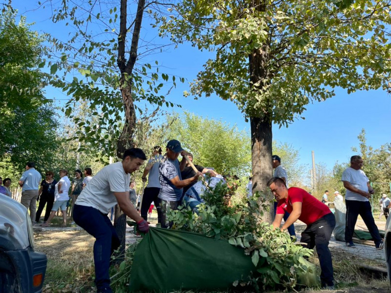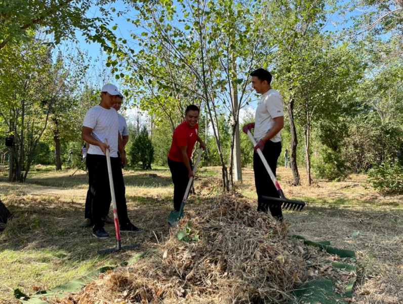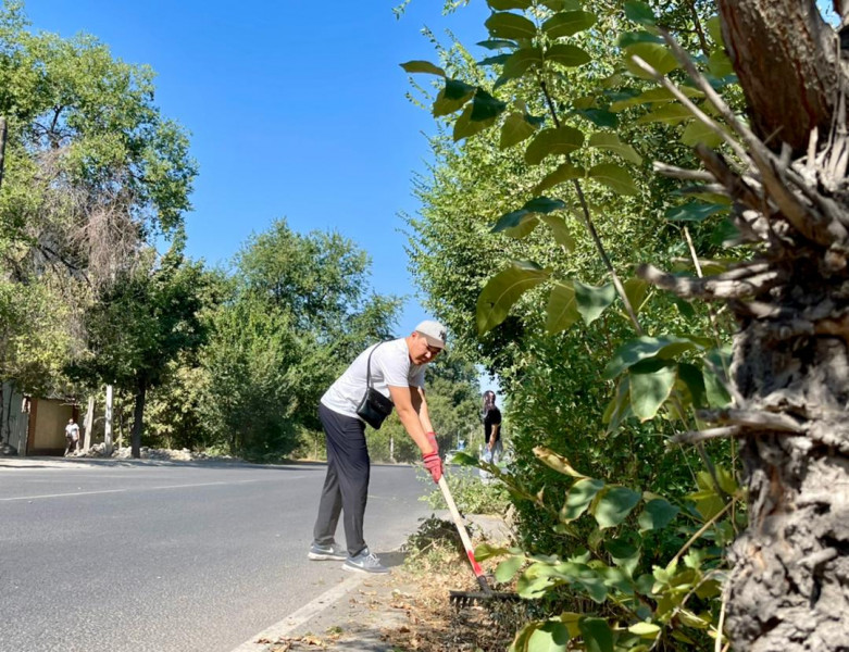 Исполняющий обязанности мэра Бишкека Таалайбек Сарыбашов вместе с горожанами принял участие в общегородском субботнике в сквере «Люкс», расположенном в Рабочем городке.