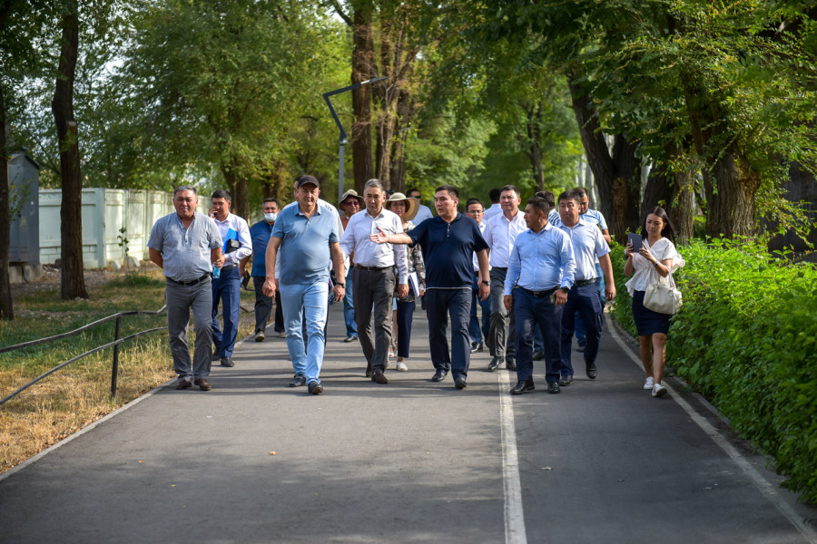 Исполняющий обязанности мэра Бишкека Таалайбек Сарыбашов совместно с городскими службами ознакомился с велодорожкой на проспекте Ч. Айтматова.