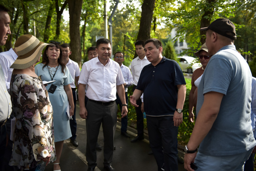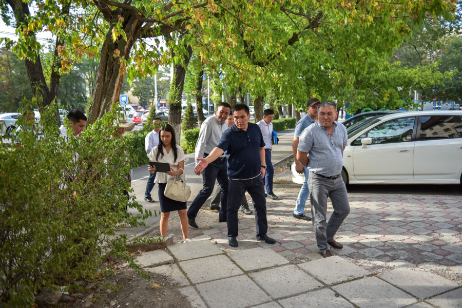 Градоначальник остался недоволен организацией полива вдоль проспекта Ч. Айтматова, обратив внимание ответственных руководителей служб на то, что зелень, расположенная ближе к дороге выглядит зелёной, а растения, находящиеся со стороны тротуара полностью высохли.