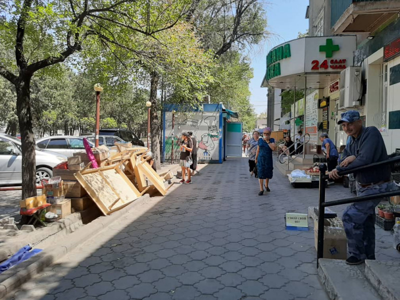 Нам пожаловались работники МП «Тазалык» на стихийных торговцев на пересечении улиц Жибек-Жолу и Тоголок Молдо за антисанитарию на перекрёстке. Мы обратились в Первомайскую администрацию с просьбой принять меры в отношении незаконных торговцев, в результате было ликвидировано 7 точек несанкционированной торговли и наведён порядок.