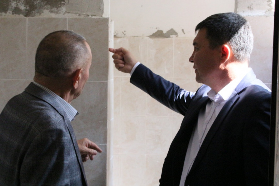 Глава Октябрьского района Мирлан Эшкожоев ознакомился ходом строительных работ школ и детского сада.