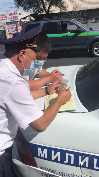 В ходе рейдовых проверок, проведенных на пересечении проспекта Чуй и улицы Бейшеналиевой со стороны УГНС Ленинского района было составлено 8 предписаний на сумму 24 000 тысяч сомов также проведены проверки службы такси на наличие патента.