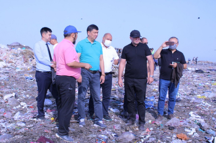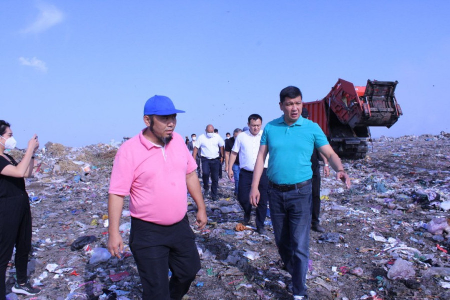 Исполняющий обязанности мэра Бишкека Айбек Джунушалиев ознакомился с деятельностью муниципального предприятия «Бишкекский санитарный полигон» и побывал на городской свалке.