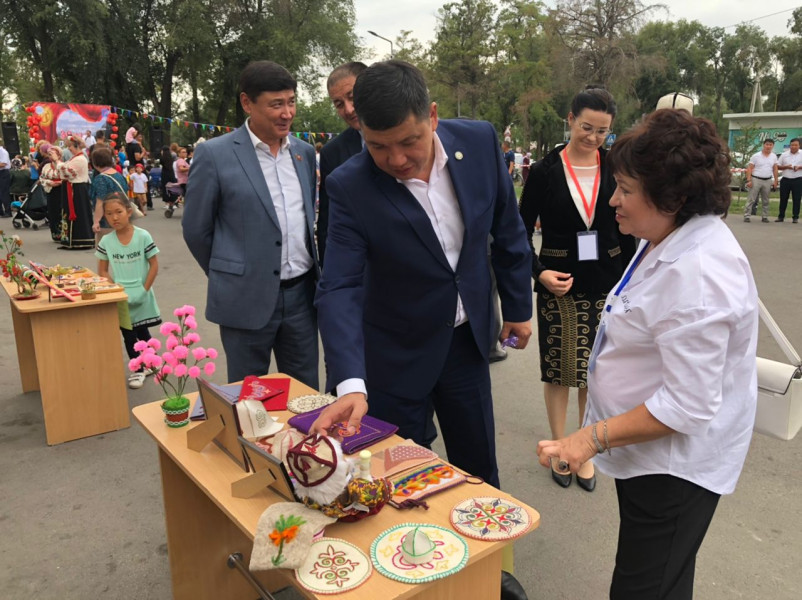 Градоначальник посетил и праздник, который организовали Ленинский акимиат в Кыргызской национальной филармонии имени Токтогула Сатылганова. Там с концертом выступают артисты филармонии. А около здания установлены 6 юрт, оформленных элементами национального прикладного искусства, организованы мастер-классы по декоративно-прикладному творчеству.