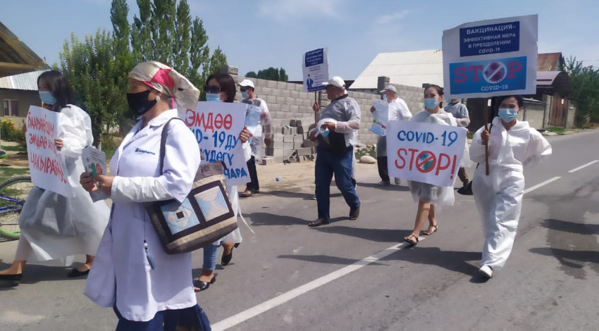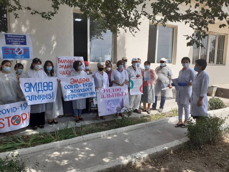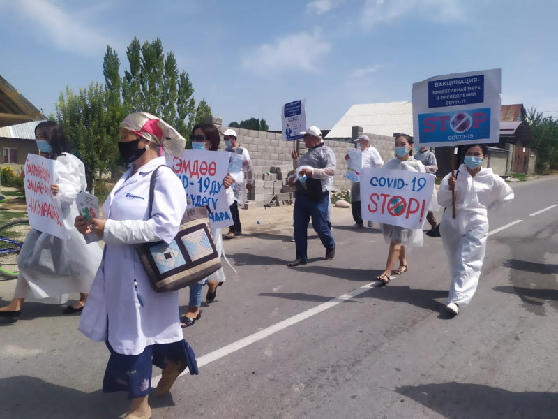 Отметим, что проводятся семинары, онлайн-конференции, круглые столы, раздаются информационно-образовательные материалы для населения на темы: «Вопросы и ответы», «Суроолор жана жооптор», «Синофарм» вакцина против COVID-19, что необходимо знать, «Эмдоо COVID-19 оруунун женуудогу эффективдуу иш чаралардын бири», Синофарм Vero Cell, «Типы вакцин» (на русском и кыргызском языках).