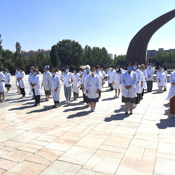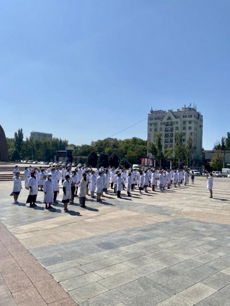 А на площади Победы сотрудниками ОЦСМ Свердловского района организован импровизированный флешмоб – 120 врачей и медицинских сестёр составили лозунг: «Мы – за вакцину!». Лозунг сняли с высоты с помощью дрона.