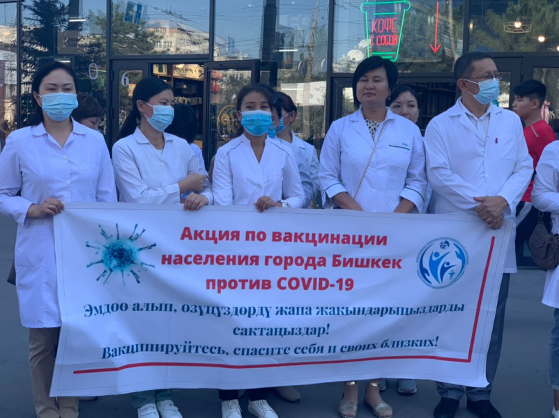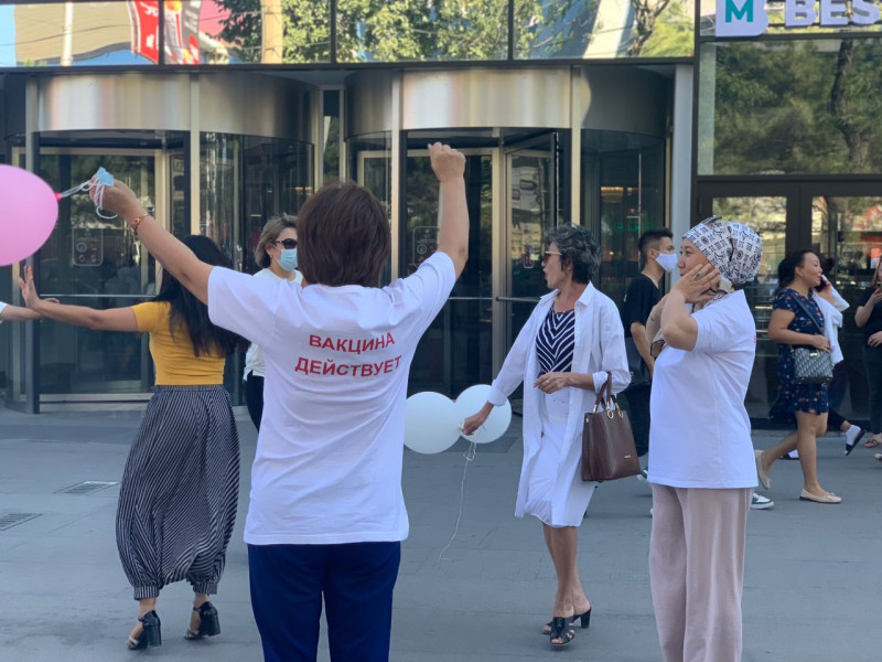 На площадке торгового центра «ГУМ» состоялась масштабная акция за вакцинацию против коронавирусной инфекции под лозунгом: «Не будет в жизни Вашей бед – вакцина Ваш иммунитет!». В ней приняли участие более 100 врачей Свердловского района, а также воспитанники Центра детского творчества.