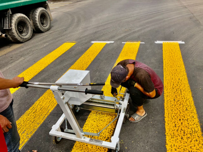 В данное время холодный пластик предприятие наносит ручным способом, а дорожную краску и термопластик разметочной машинкой.