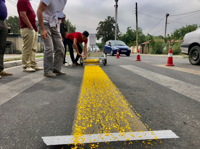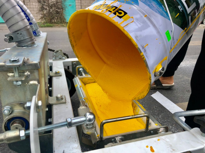 Напомним, разметочная машина «Шмелёк ХП» работает только с холодным пластиком, производится в Республике Беларусь и стоит в порядке 600 тысяч сомов.
