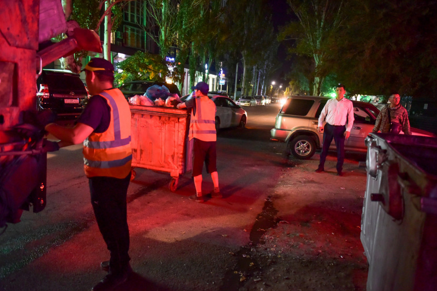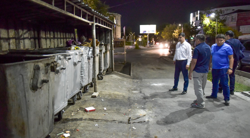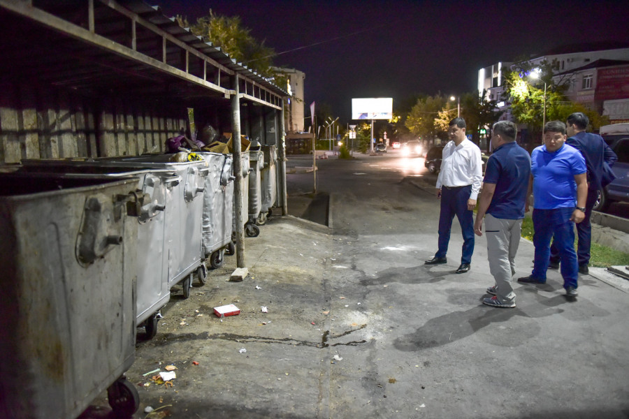 Столичный мэр вчера поздно вечером и сегодня ранним утром объездил ставший в последнее время проблемным в плане сбора и вывоза Октябрьский район Бишкека. Из-за неисполнения компанией Комтранском своих обязательств должным образом на протяжении последних месяцев и недостаточной работы муниципального предприятия Тазалык в этом районе жители столицы испытывают неудобства и жалуются на скапливание мусора в баках.