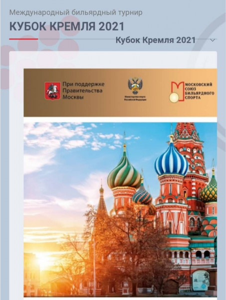 С 13 по 18 сентября во Дворце спорта «Лужники» (г. Москва) проводится Кубок Кремля по бильярдному спорту.