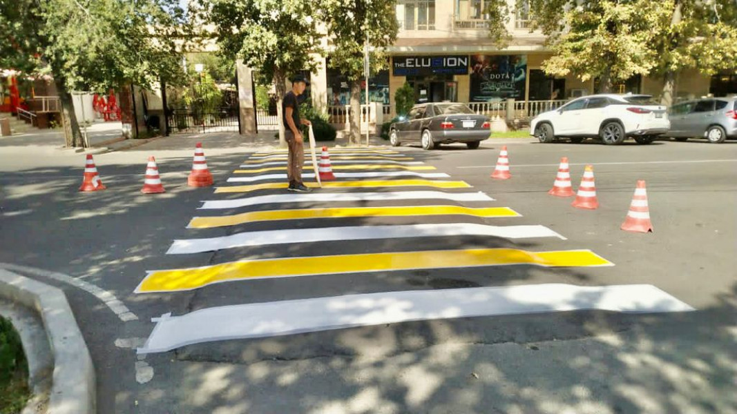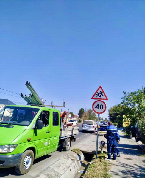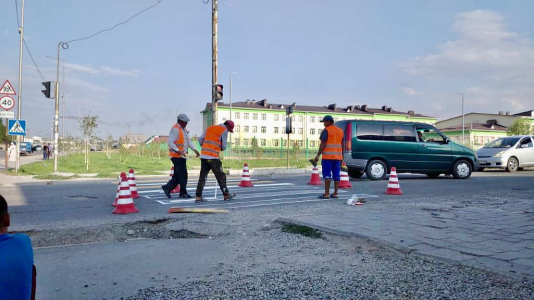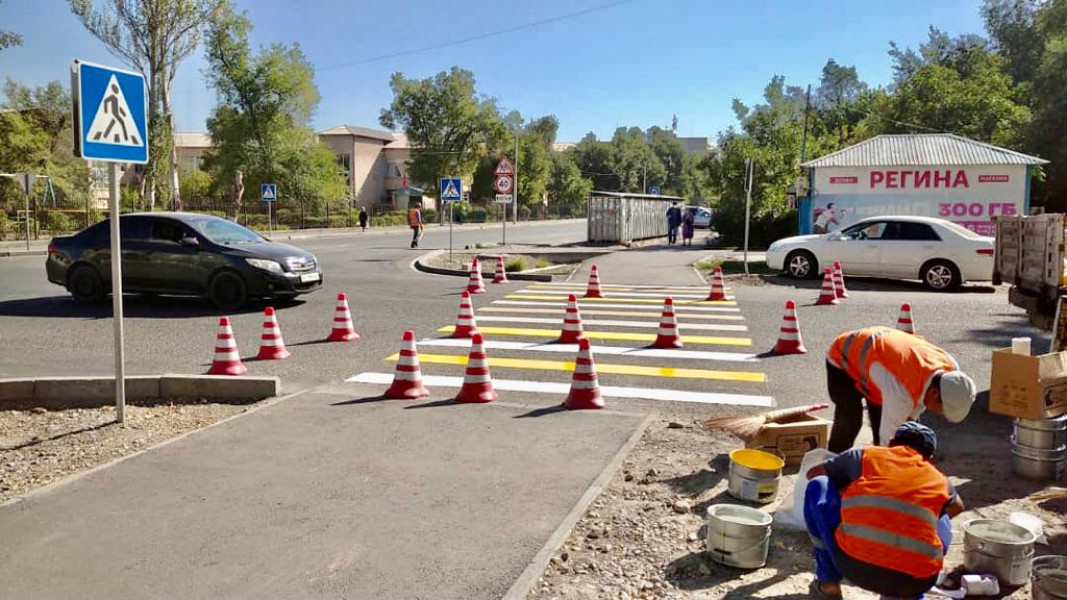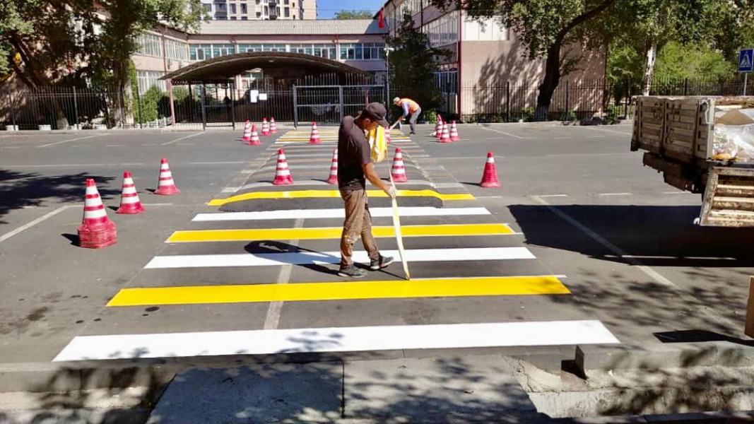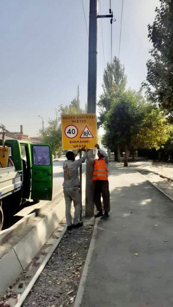 Во всех четырёх районах столицы вблизи образовательных учреждений обновляются дорожные знаки и разметки. Такую работу проводит муниципальное предприятие «Бишкекасфальтсервис».