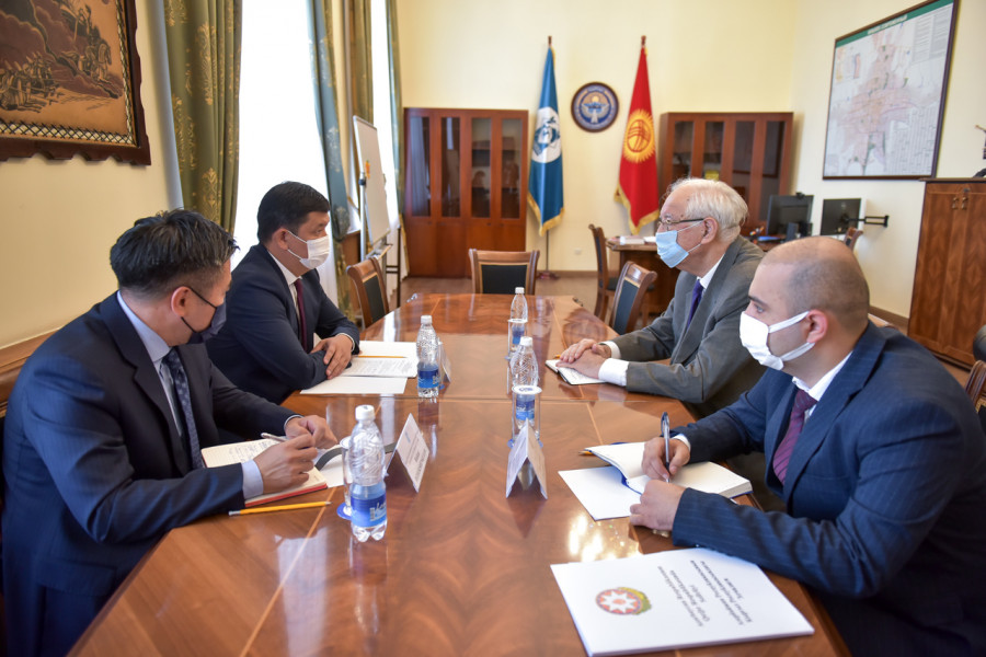 Мэр Бишкека Айбек Джунушалиев встретился с Чрезвычайным и Полномочным Послом Азербайджанской Республики в КР Гидаятом Худуш оглы Оруджевым.