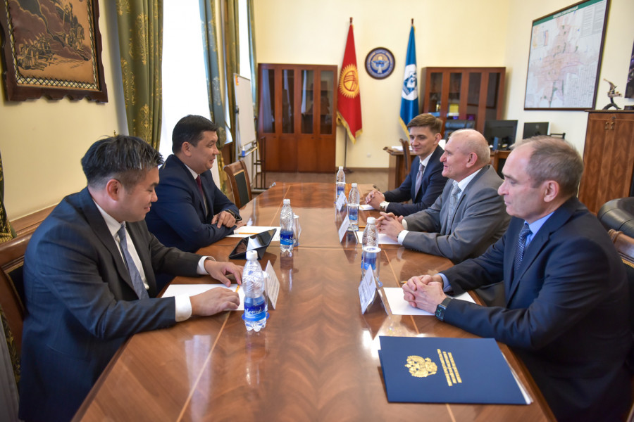 В здании муниципалитета состоялась встреча мэра Бишкека Айбека Джунушалиева с Чрезвычайным и Полномочным Послом Российской Федерации в КР Николаем Удовиченко.