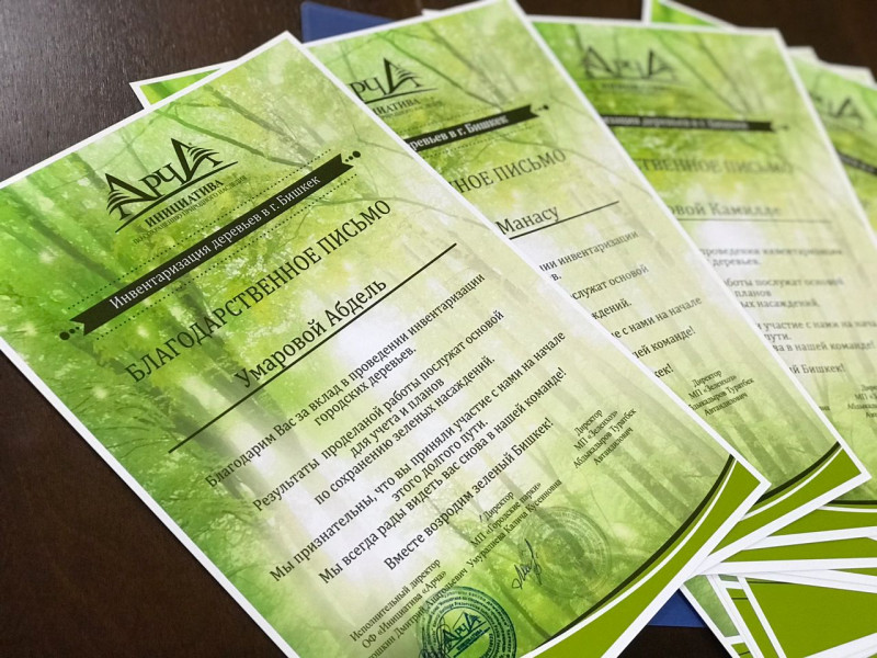 Теперь у 700 зелёных жителей города появились «медицинские карточки», в которые внеслись данные о количестве, геолокации, видах, орошаемости и состоянии деревьев. Благодаря этой программе сотрудники Бишкезеленхоза в последующем смогут заблаговременно вычислить сумму средств необходимых для их ухода и лечения.