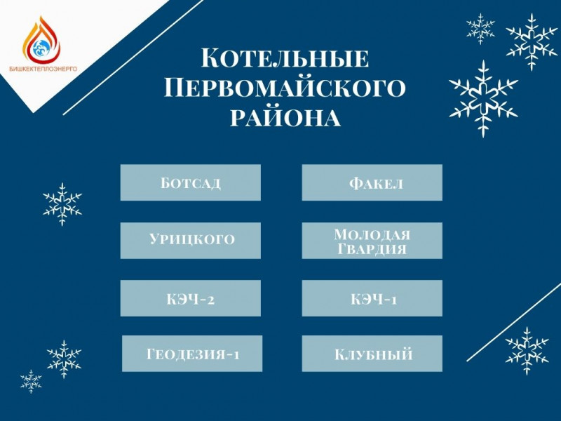 На территории района функционирует 21 котельная коммунального предприятия «Бишкектеплоэнерго». В районе 1 – объект здравоохранения, 14 – школ, 2 – садика, 1 – ВУЗ, 6 – бюджетных организаций, количество абонентов – 4 599.