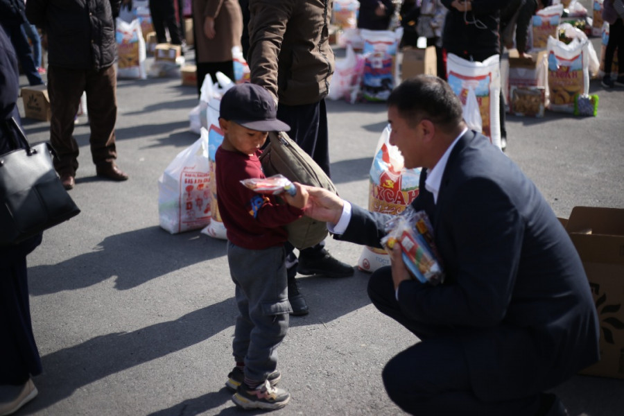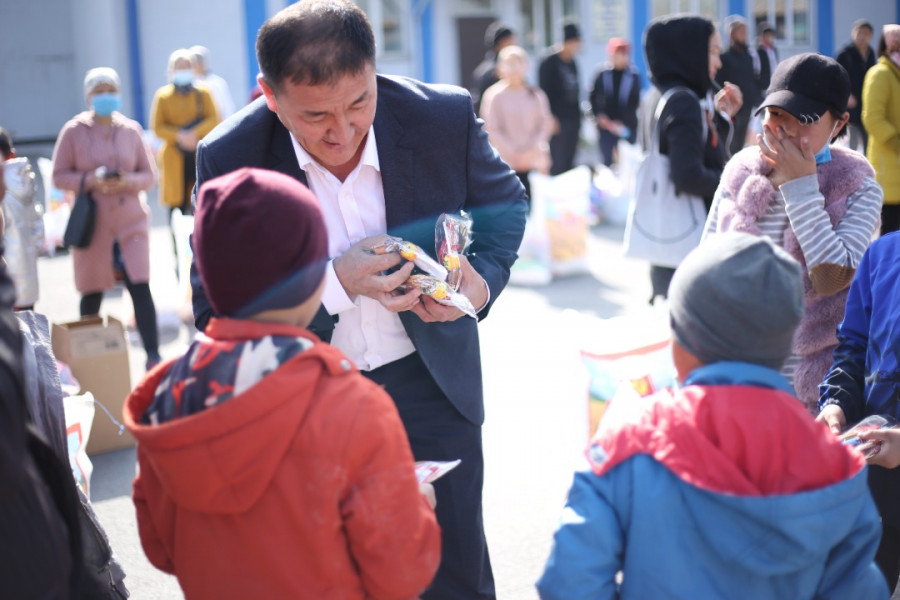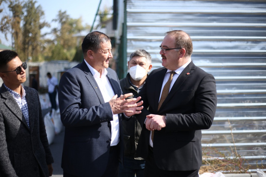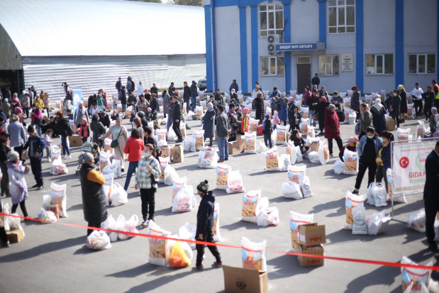 Глава района Жамалбек Ырсалиев совместно с Чрезвычайным и Полномочным Послом Турецкой Республики в КР Ахмет Садык Доган приняли участие в раздаче гуманитарной помощи.