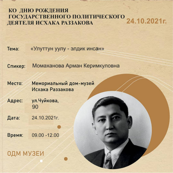 24 октября в 9:00 часов в доме-музее И. Раззакова по адресу: ул. Чуйкова №90 в честь Дня Рождения государственного деятеля проведут встречу воспоминаний.