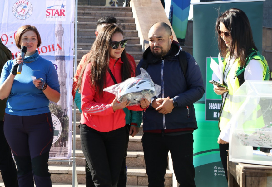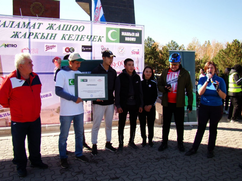 Победителям вручили ценные призы, необходимые велосипедистам велошлемы и различные велоаксессуары. И напоследок разыграна лотерея на путевку в Турцию, предоставленную ОО «Жашыл Ай». Счастливым обладателем стал 17-летний велосипедист Данияр Джанышбеков.